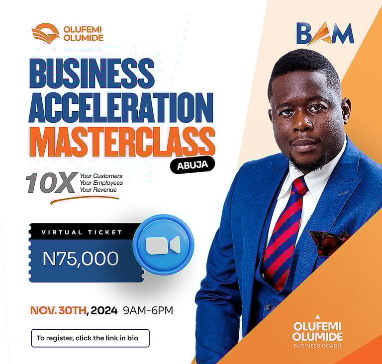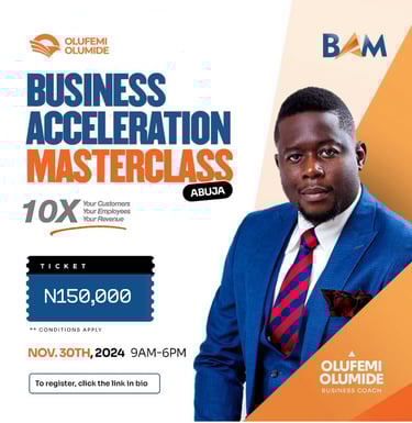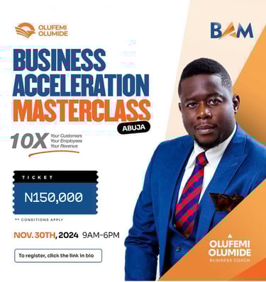 Olufemi looks forward to sitting down with business owners who desire strategic growth and who ultimately want to 10X their business at the Business Acceleration Masterclass 2024. If you are one of those who truly desire strategic growth, use the link below to sign up. Don't forget to grab your 20% discount at checkout with the code BAMABUJA20. See you in class. #YOUcan!